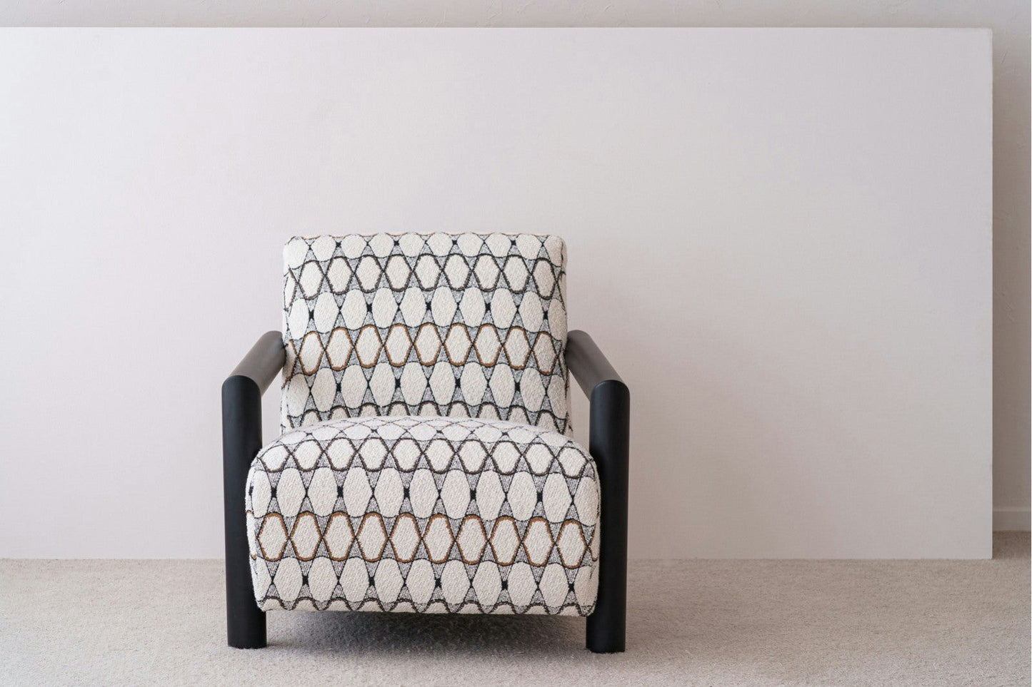 Fabricada con un tapizado de bouclé 100% poliéster, esta butaca garantiza durabilidad y resistencia al uso diario. El contraste de sus brazos en madera maciza de roble con acabado negro mate crea un toque visualmente impactante. Estos materiales no solo son estéticamente agradables, sino que también ofrecen una larga vida útil, asegurando que la butaca se mantenga en excelentes condiciones.