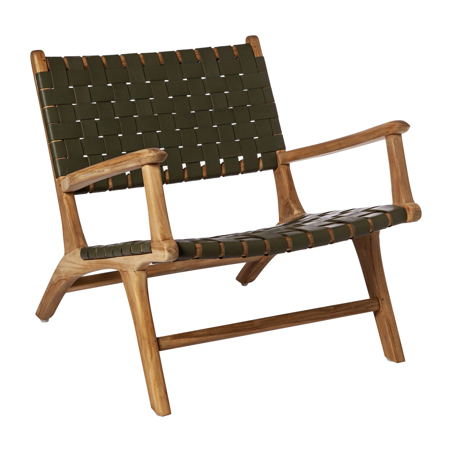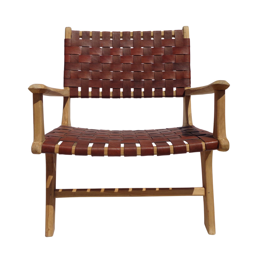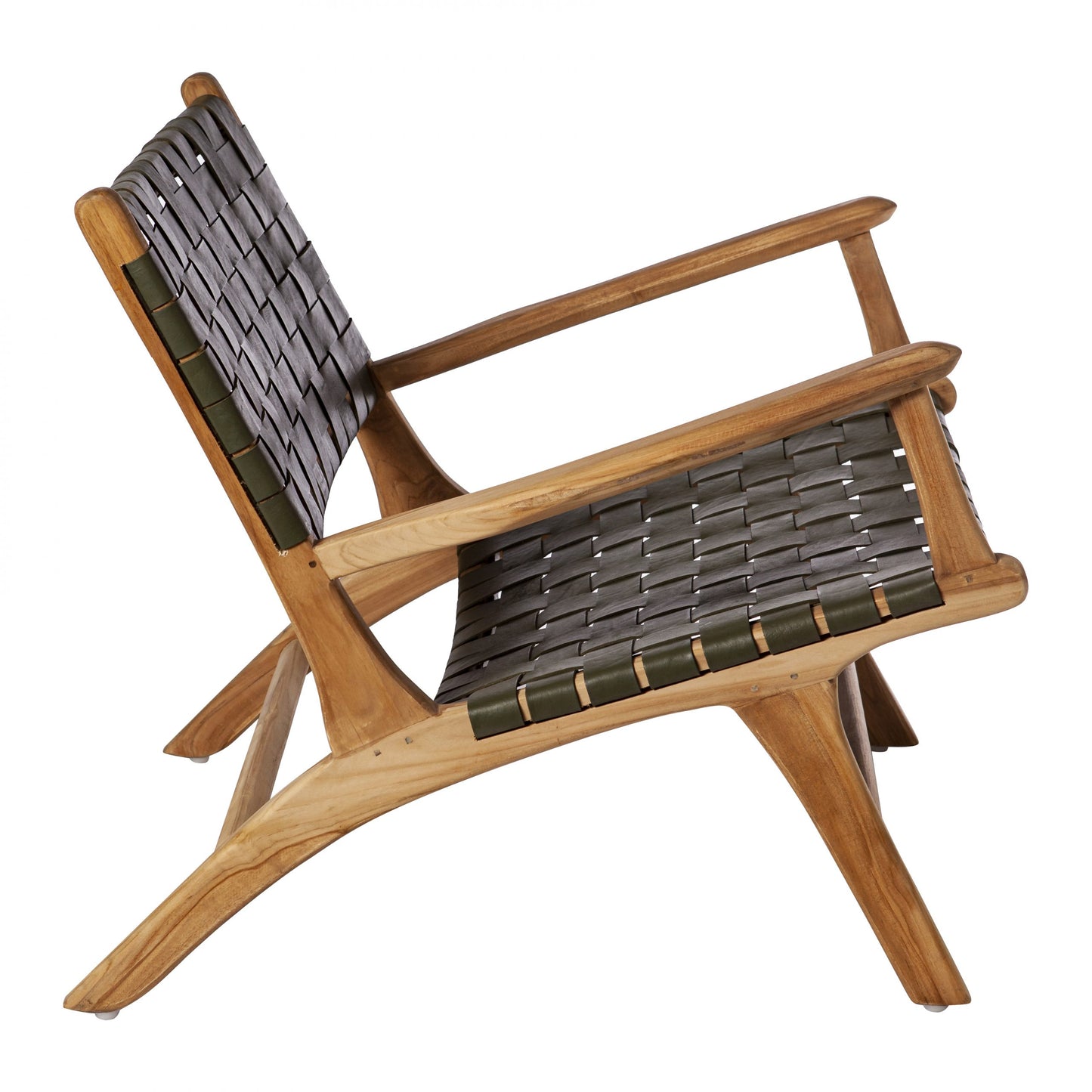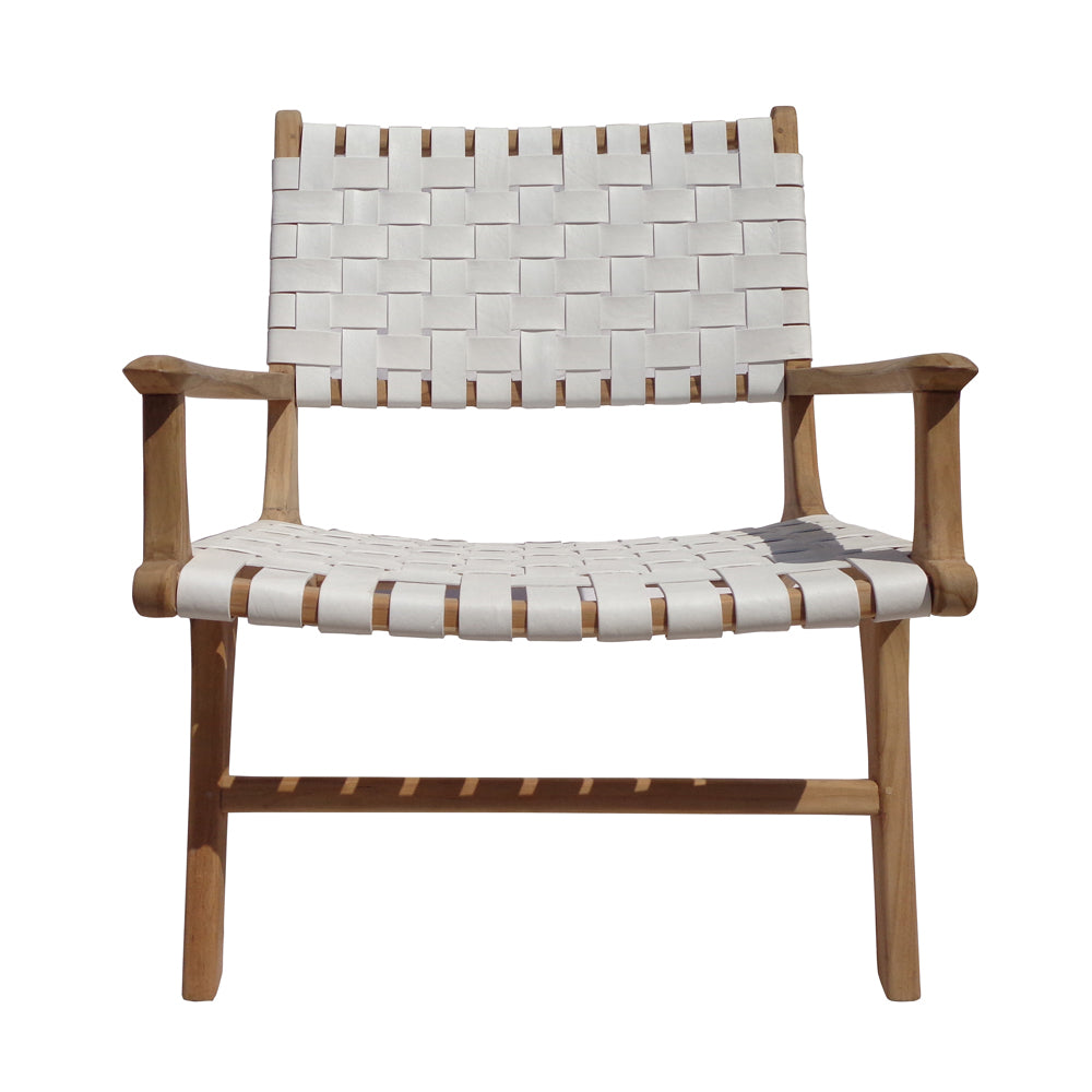 La estructura del Sillón Zoe está confeccionada en madera de teca, material reconocido por su durabilidad y resistencia. Su elegante entramado de tiras de cuero en el asiento y respaldo realza su sofisticación, disponible en combinaciones de colores como verde/natural, blanco/natural y marrón/natural. Estos acabados no solo aseguran un toque visual atractivo, sino que también garantizan una versatilidad que se adapta a estilos contemporáneos y rústicos.
