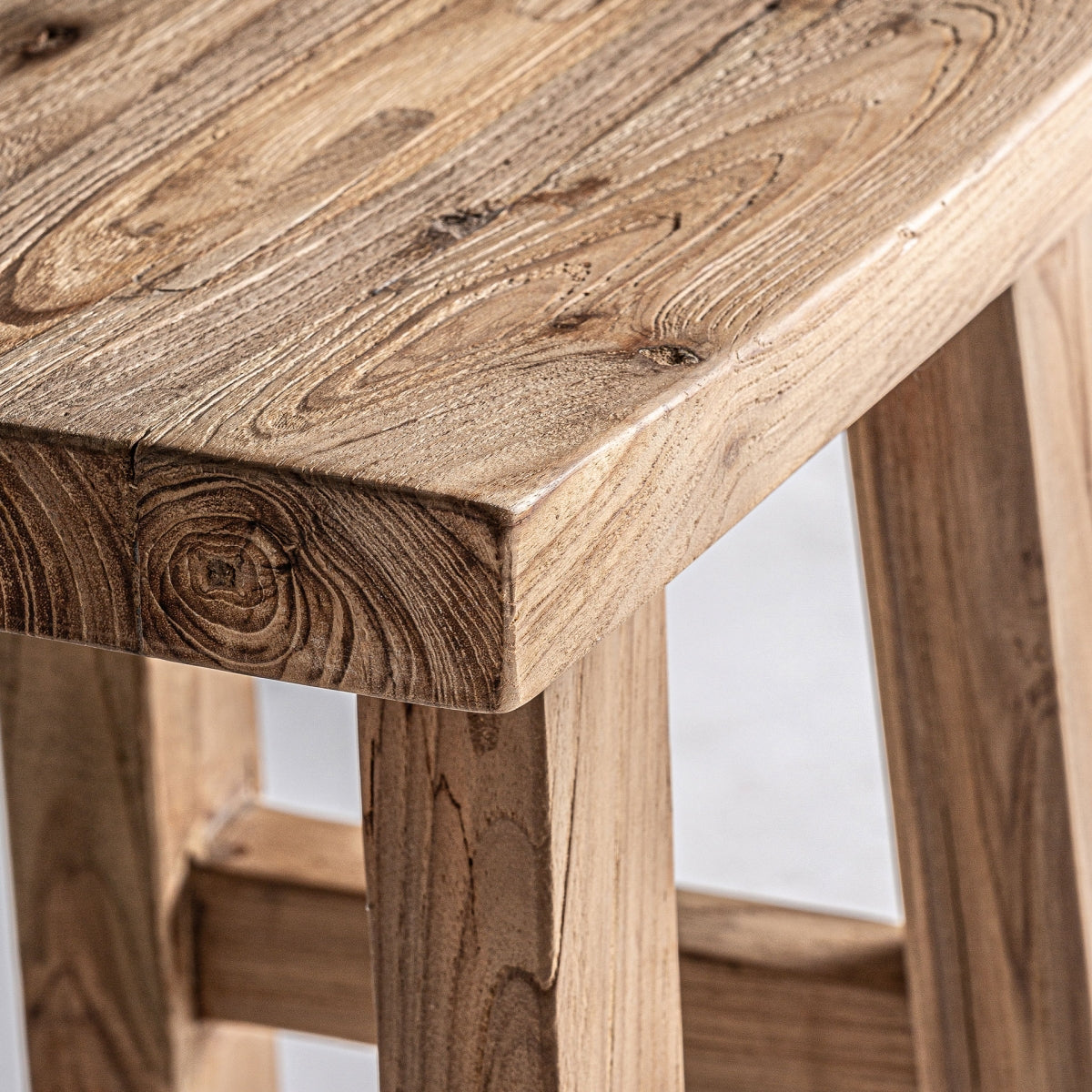 Fabricado en madera de teka natural, este reposapiés destaca por su resistencia, durabilidad y belleza única. La madera maciza presenta vetas irregulares, pequeñas grietas o nudos que no son defectos: son parte de su esencia artesanal. El acabado en tono marrón realza su estética rústica y elegante, perfecta para quienes valoran los materiales nobles y los muebles con alma.