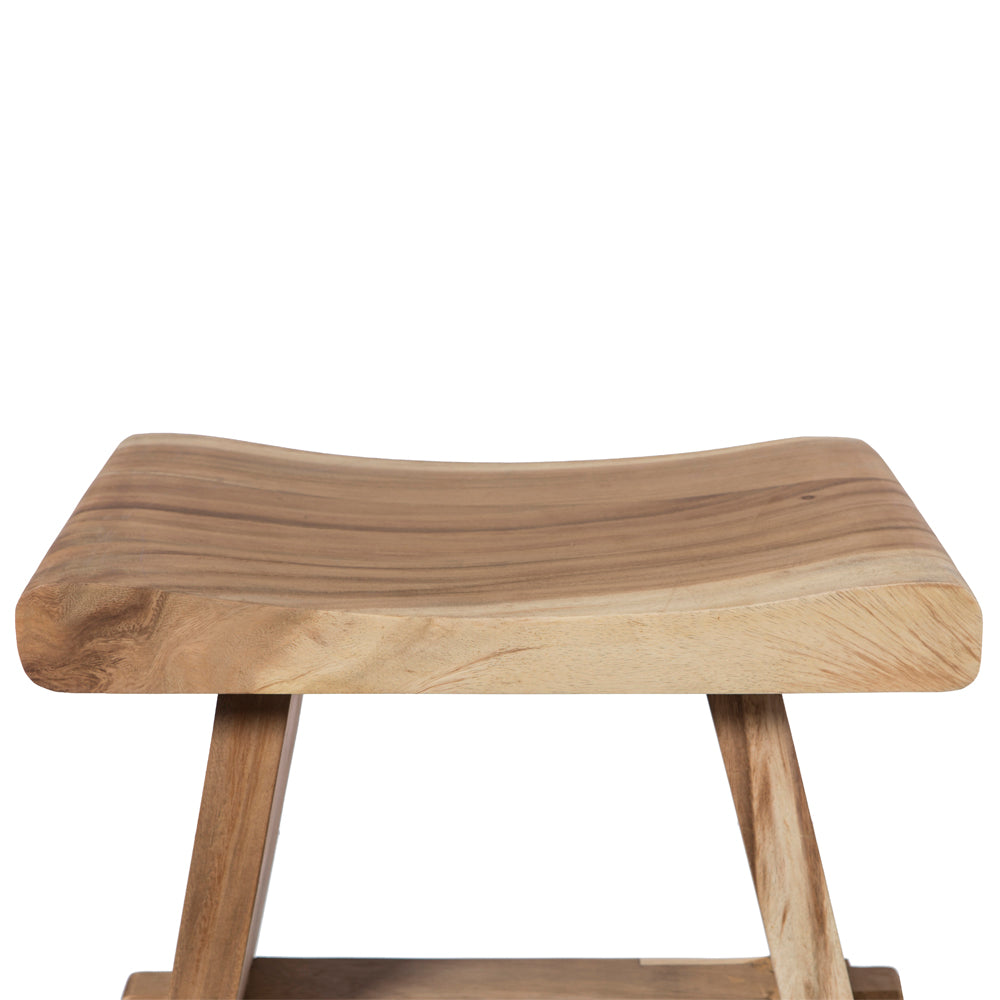 El Taburete SATE está construido en madera de meh de alta calidad, lo que garantiza durabilidad y resistencia. Su acabado en color natural resalta las vetas únicas del material, aportando un toque de naturaleza y autenticidad a la decoración. La estructura robusta asegura estabilidad, mientras que sus líneas limpias reflejan un diseño contemporáneo apto para cualquier espacio.