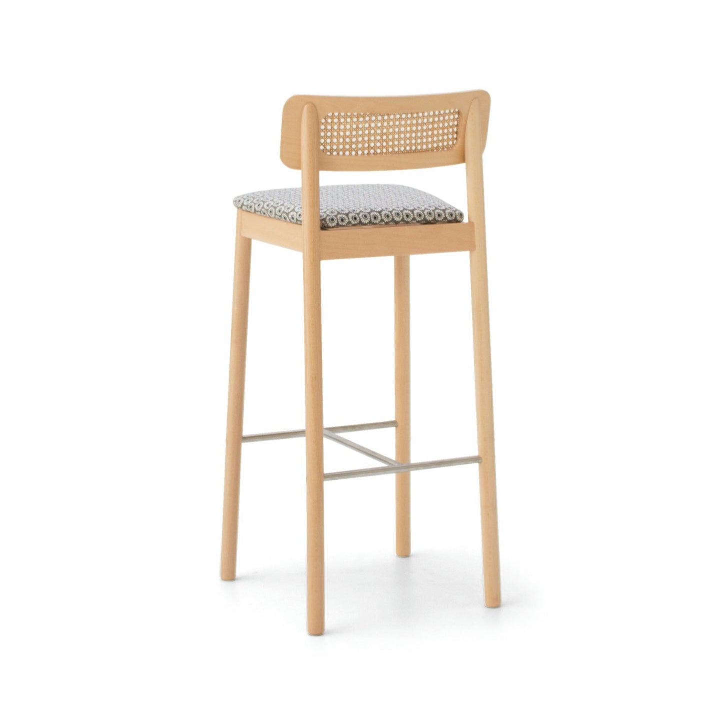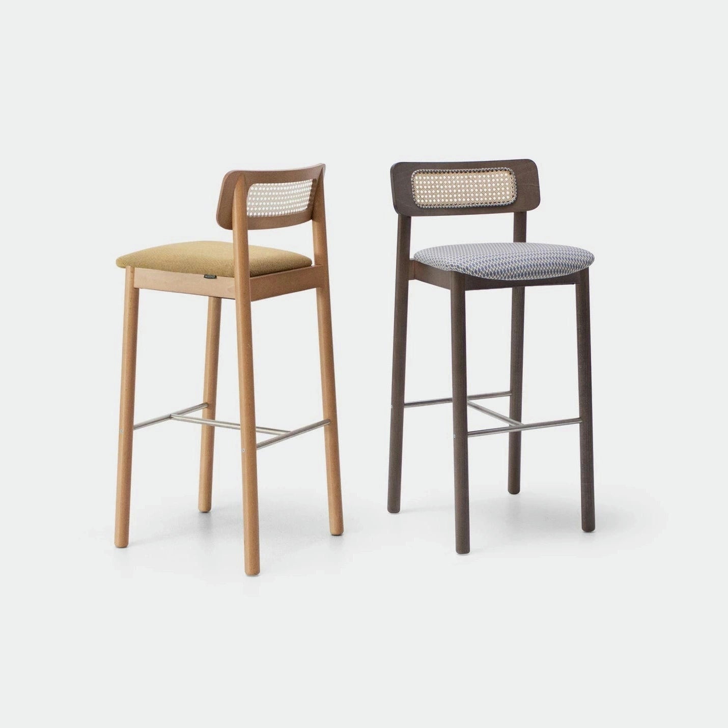 Construido con madera de haya maciza, el taburete Bion Médula garantiza durabilidad y robustez, mientras mantiene un diseño elegante. Sus líneas limpias y su acabado en madera natural resaltan la belleza de este material, asegurando que cada pieza sea única. El respaldo de médula añade un toque artesanal, complementando un asiento tapizado que puedes personalizar según tu preferencia. Los reposapiés metálicos no solo ofrecen soporte adicional, sino que también crean un atractivo contraste visual.