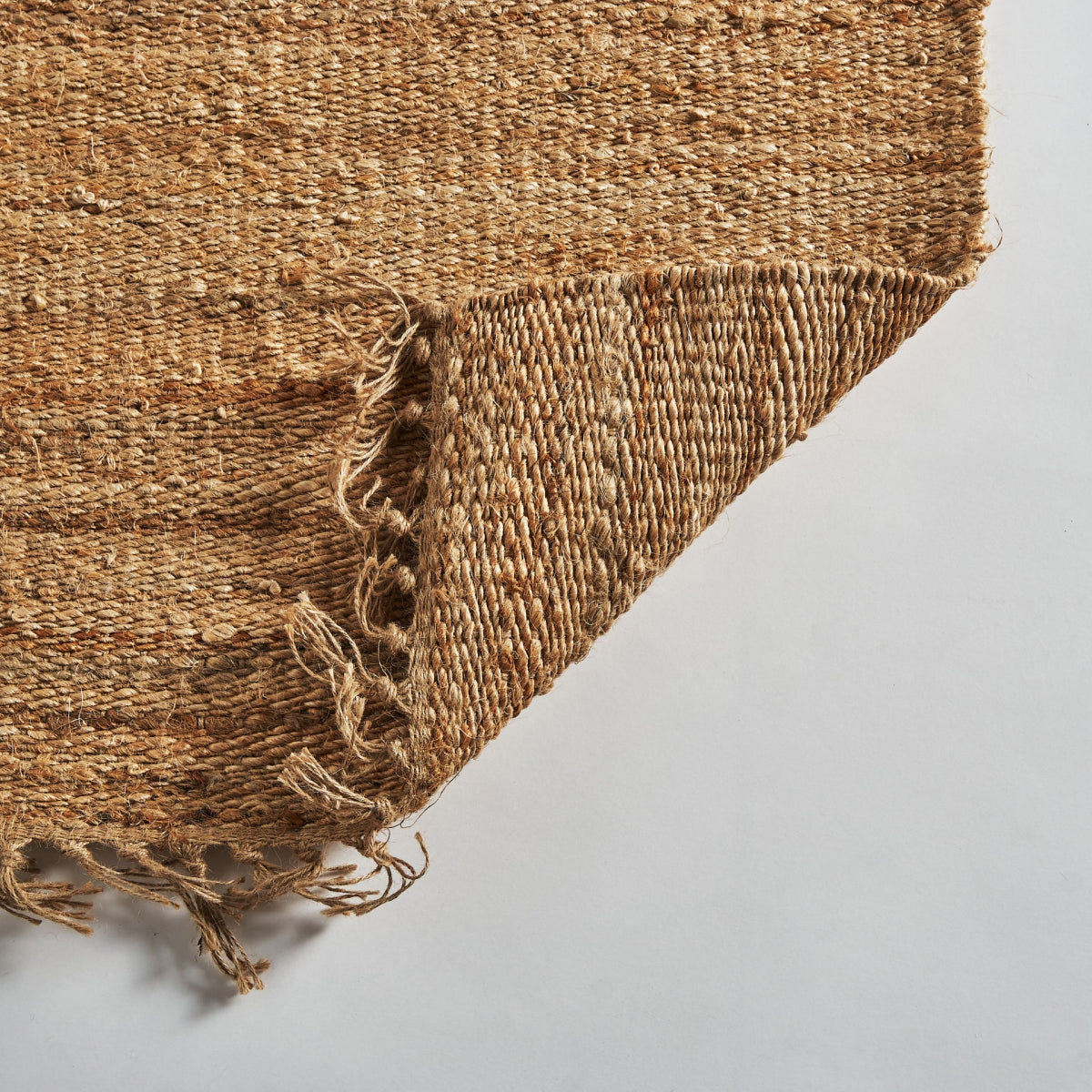 El protagonista principal de esta pieza es el yute en el que se fabrica, un material resistente y duradero que asegura una larga vida útil. Además, su diseño rectangular y su peso sólido sugieren una calidad premium que no solo se ve, sino que se siente. Cada detalle de esta alfombra ha sido pensado para asegurar que se funda armónicamente con cualquier tipo de decoración bajo un estilo hogareño y sofisticado.