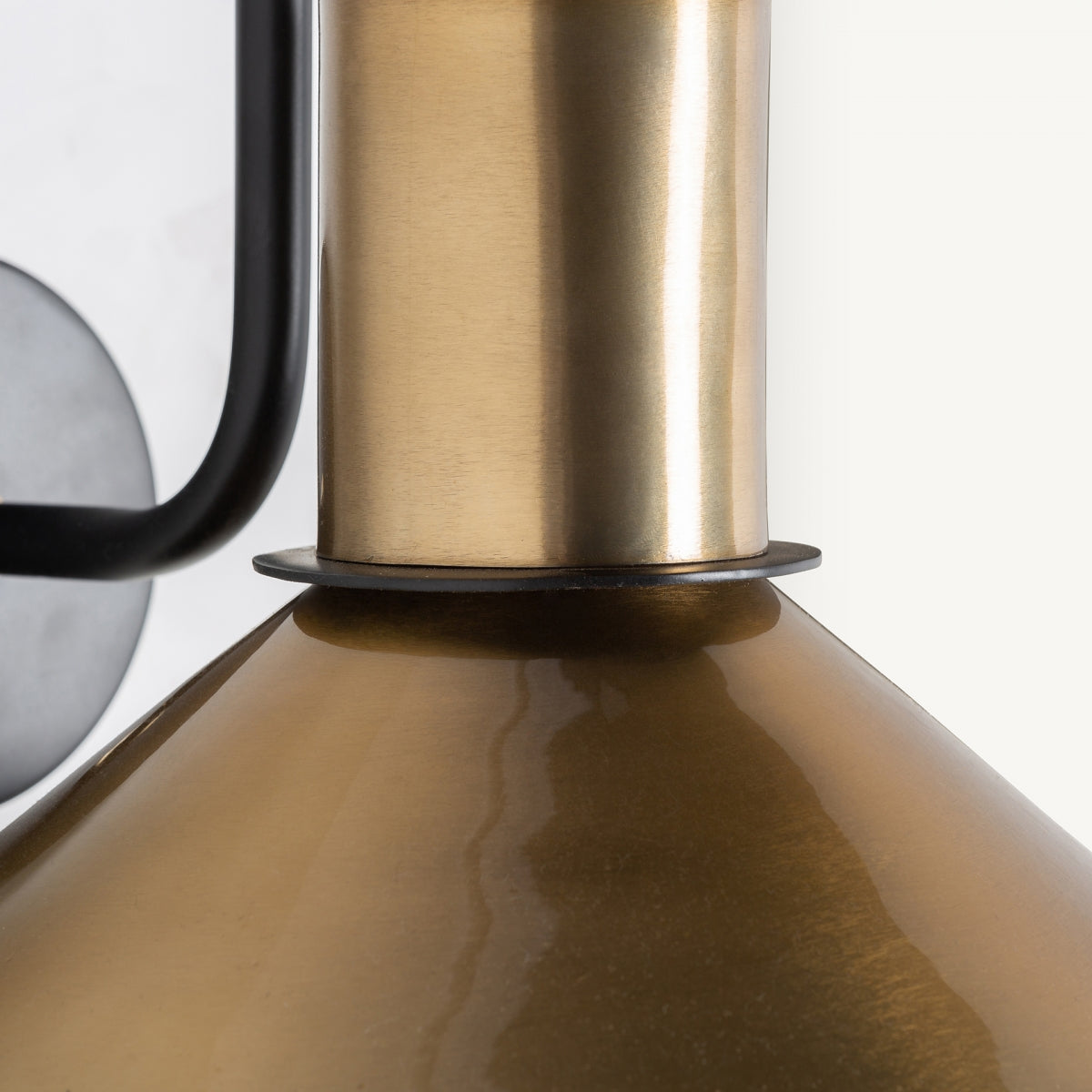 Fabricado en hierro con un acabado en oro y detalles en negro, este aplique destaca por su construcción robusta y estética refinada. Sus líneas geométricas se integran perfectamente en ambientes modernos o de inspiración clásica, asegurando una durabilidad sin igual y un encanto atemporal.