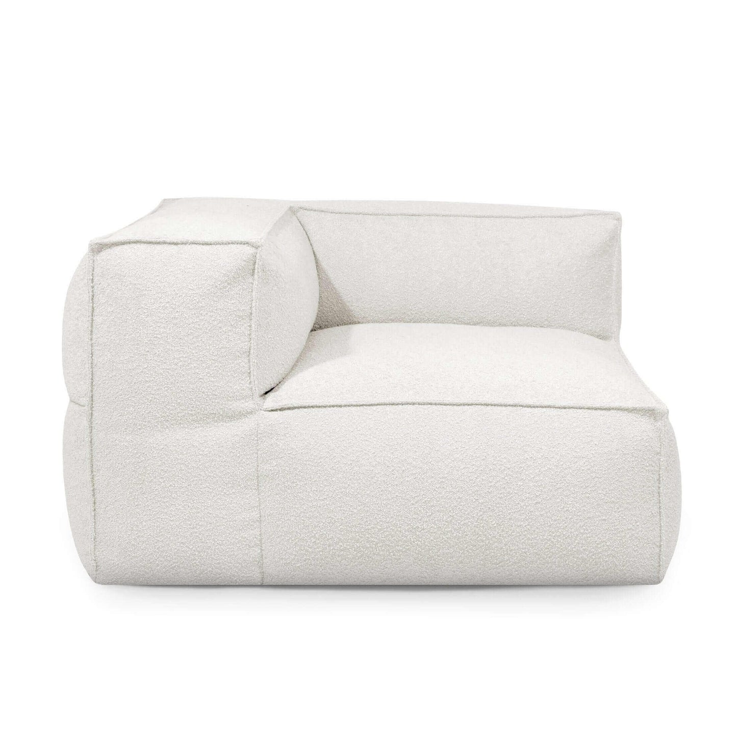Sofá puff modular esquina izquierda 2 plazas de tela bouclé suave 125×125×72 cm – elegante – salón o terraza cubierta – MASS CORNER 125 LEFT MADU