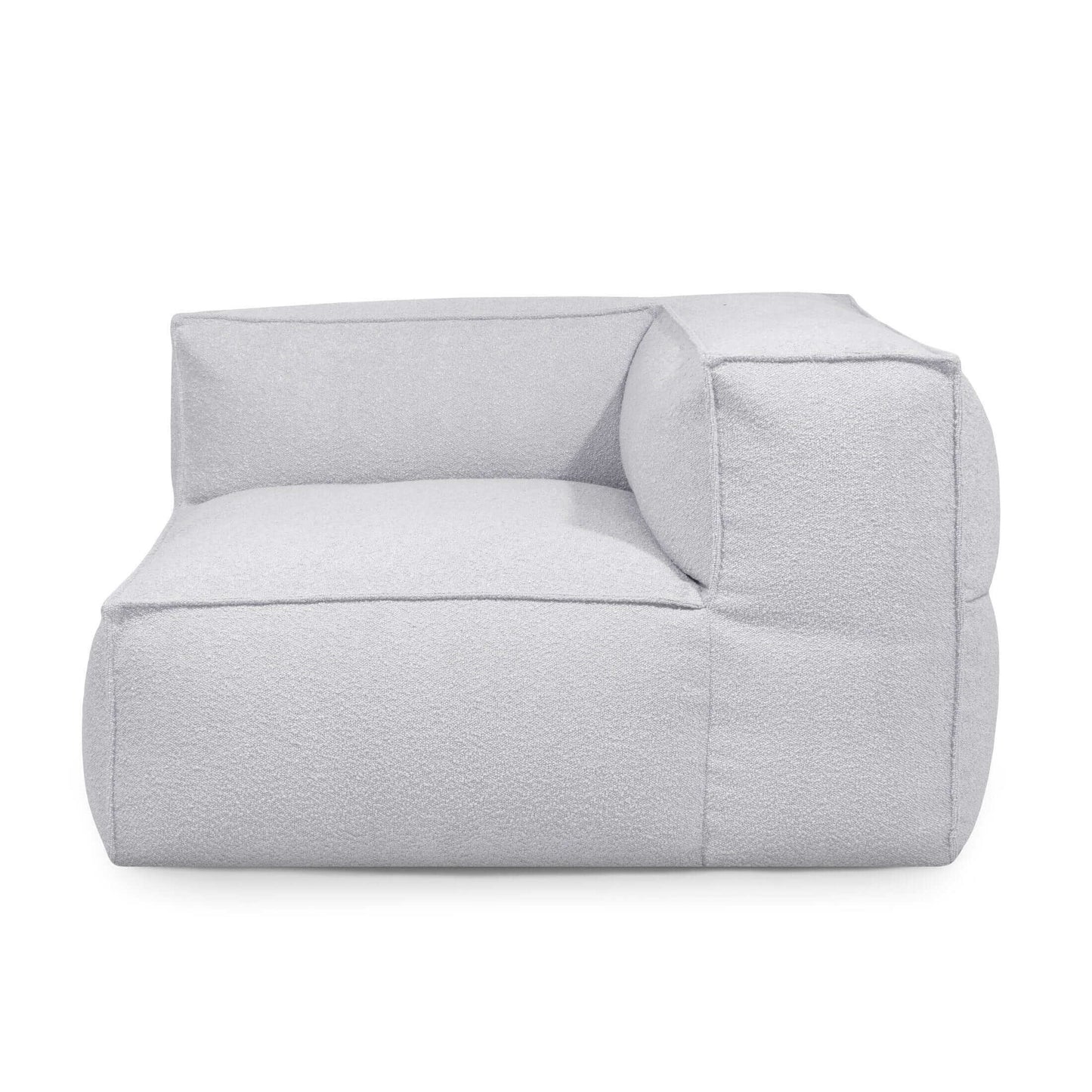 Sofá puff modular esquina derecha 2 plazas de tela bouclé suave 125×125×72 cm – elegante – salón o terraza cubierta – MASS CORNER 125 RIGHT MADU