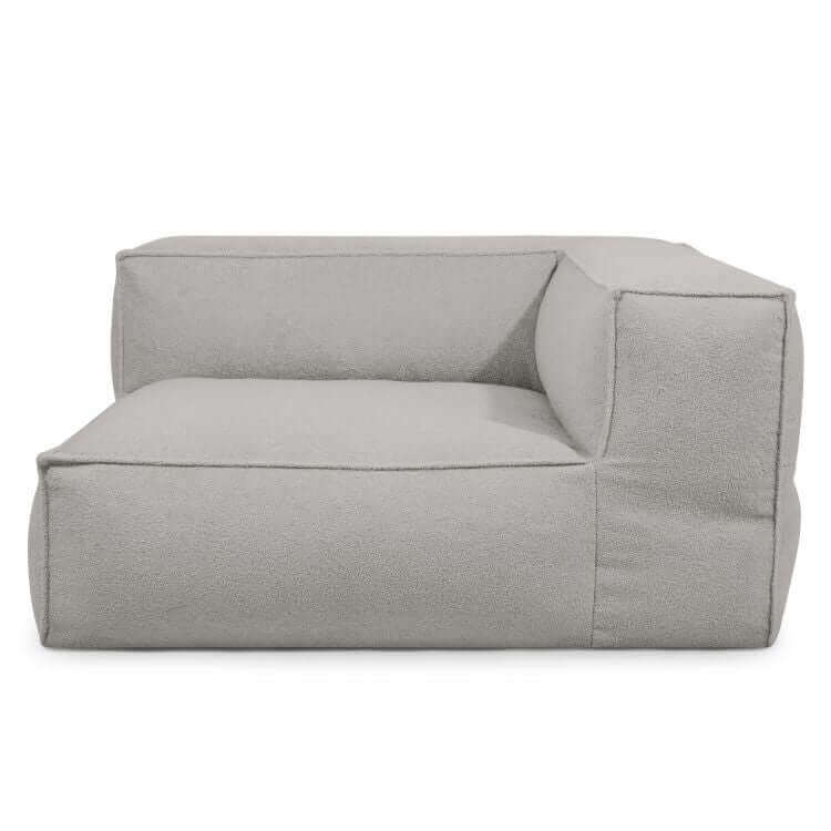 Sofá puff modular esquina derecha 2 plazas de tela borreguito 125×150×72 cm – acogedor – salón o terraza cubierta – MASS CORNER 150 RIGHT TEDDY