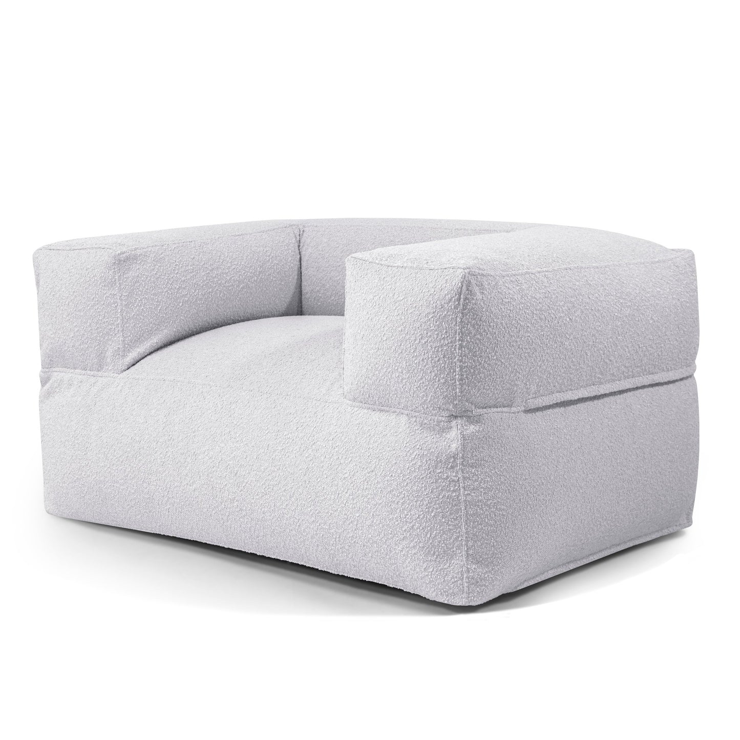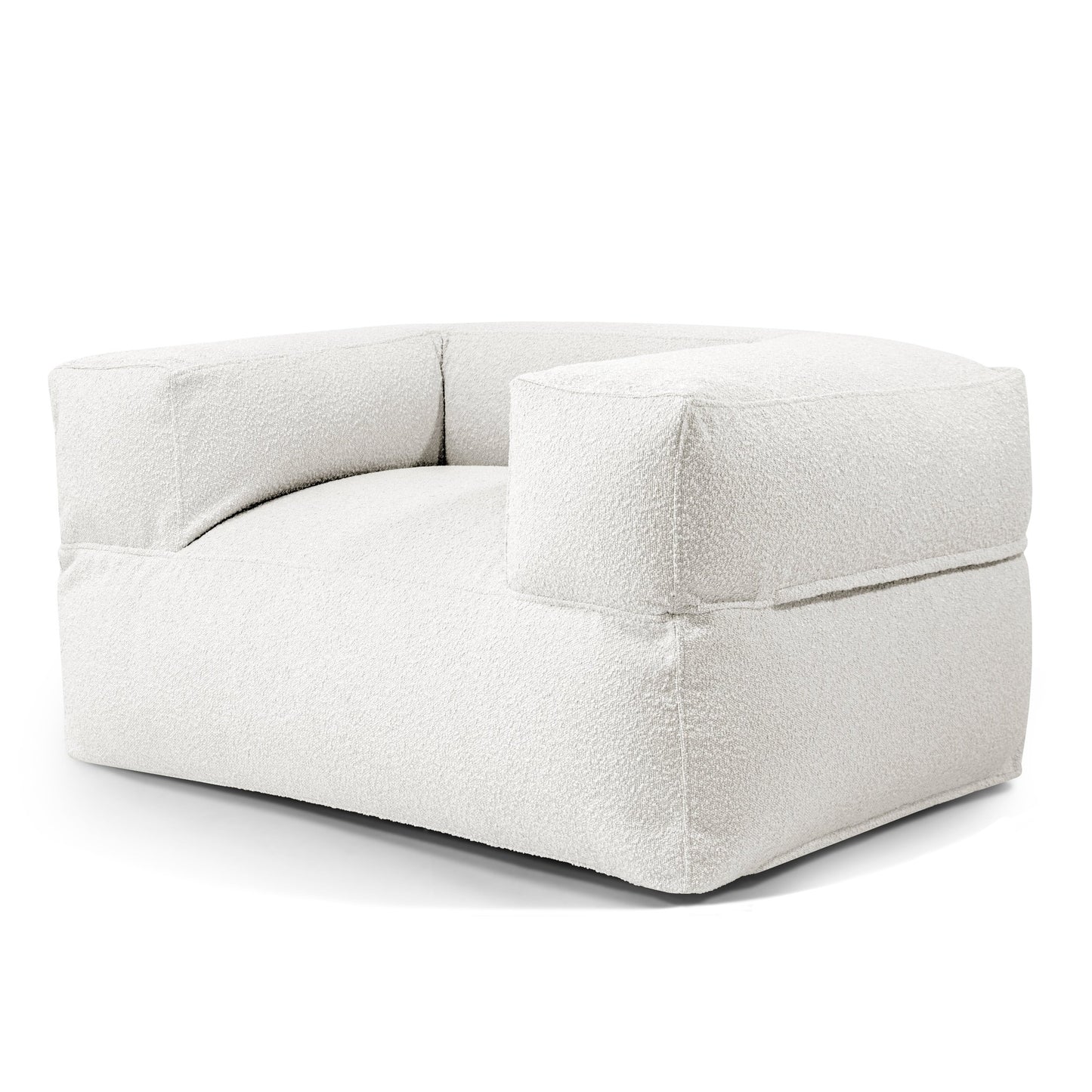 Puff sofá con reposabrazos tejido de bouclé blanco – diseño escandinavo – salón, dormitorio, despacho – 95×125×65 cm – MOOG MADU