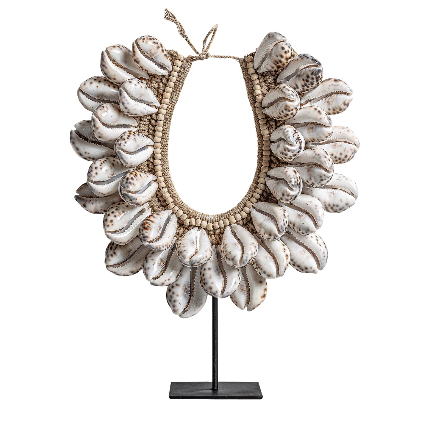 Figura decorativa de resina blanca, hierro y conchas naturales 36×12×39 cm - étnico - CONCHA